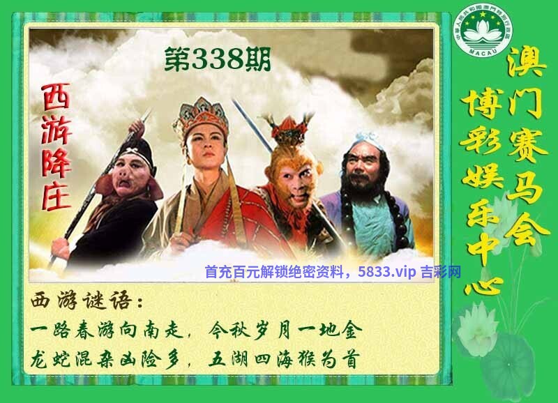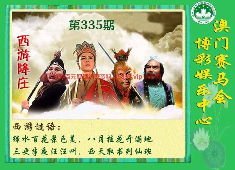 335期西游记: 绿水百花景色美,八月桂花开满地 三更半夜汪汪叫,西天取书列仙班 解析:绿水百花景色美,八月桂花开满地,绿解得绿肖牛羊龙狗,桂花猪,三更半夜汪汪叫,西天取书列仙班,汪汪叫明狗 综合七肖:牛羊龙狗猪虎猴 综合五肖:牛羊龙狗猪 |